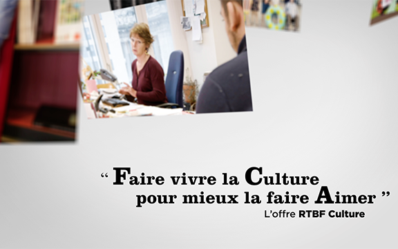 Préparation de ces habillages modifiables et "responsive" (bandeaux, génériques de fin...) en vue des montages du magazine culturel lors du festival de Namur la semaine suivante.
